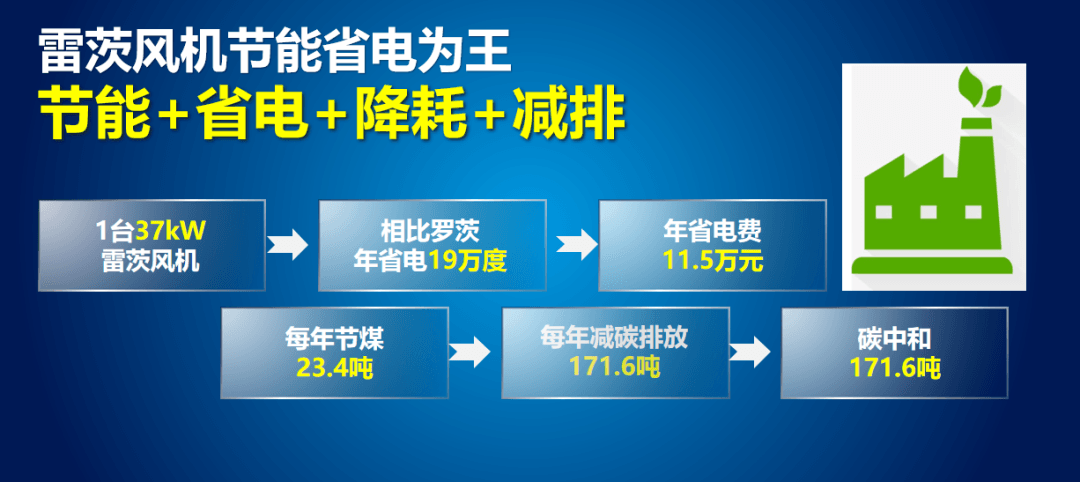 從經(jīng)濟(jì)效益看,用雷茨風(fēng)機(jī)取代傳統(tǒng)羅茨風(fēng)機(jī)為企業(yè)節(jié)約大量成本。例如一臺(tái)37kW的雷茨風(fēng)機(jī),相比羅茨風(fēng)機(jī)每年大約可以省電19萬度,省電費(fèi)約11.5萬元,減碳排放約172噸。雷茨成為“碳達(dá)峰”時(shí)代名副其實(shí)的節(jié)能小標(biāo)兵。