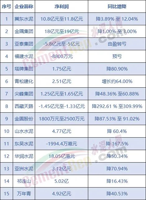 據(jù)水泥人網(wǎng)不完全統(tǒng)計(jì),截止目前發(fā)布半年報(bào)及半年預(yù)報(bào)的15家企業(yè)中,絕大多數(shù)利潤(rùn)大幅下滑,甚至有個(gè)別企業(yè)預(yù)報(bào)虧損。