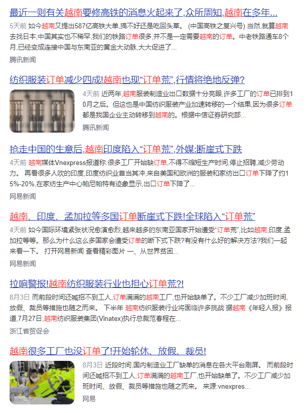 有越南工廠負(fù)責(zé)人表示,工廠仍在正常運(yùn)營(yíng),但到9月至10月,訂單將丟失。根據(jù)計(jì)劃,企業(yè)將在第四季度左右安排工人休假。國(guó)慶假期工廠將停產(chǎn)8天,然后視情況安排工人周六休假,減少加班。