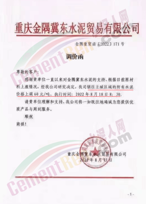 重慶金隅冀東于8月17日起停止水泥生產(chǎn),停產(chǎn)期間無法保證水泥供應(yīng)。
