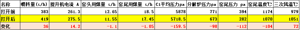 應(yīng)用于水泥熟料燒成系統(tǒng)的“精準(zhǔn)平衡操作技術(shù)”是我們國家在世界水泥行業(yè)的一項原創(chuàng)技術(shù)。自從問世以來,很多工廠都在嘗試把三次風(fēng)閥門全開運行,但是由于系統(tǒng)的工藝結(jié)構(gòu)不同以及大家學(xué)習(xí)理解和掌握的的深度不同。各種生產(chǎn)線提升效果也不同。繼浙江、重慶、山東、河南、廣東多個水泥工廠把三次風(fēng)管打開運行取得了明顯的提產(chǎn)﹑降耗﹑降阻效果之后,四川的一家工廠在打開運行后,也產(chǎn)生了非常明顯的效果。更因為煤價的持續(xù)增長,使其一項技術(shù)措施就產(chǎn)生了4000多萬元的效益。下面是該企業(yè)打開三次風(fēng)管閥門前后系統(tǒng)運行的兩個頁面實況。