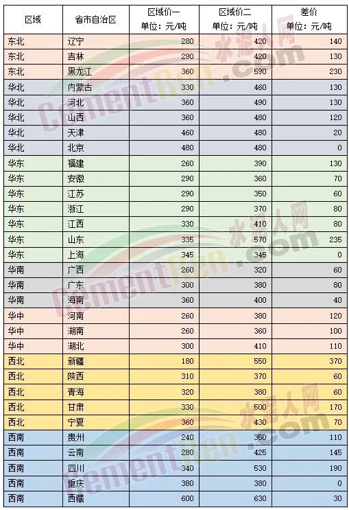 單從發(fā)布漲價(jià)的函的省份來看,幾乎全區(qū)域都在調(diào)漲。但是并不是所有省份的所有地區(qū)都調(diào)價(jià)了水泥價(jià)格,部分區(qū)域水泥價(jià)格觸底后一直未見反彈,持續(xù)磨底中。