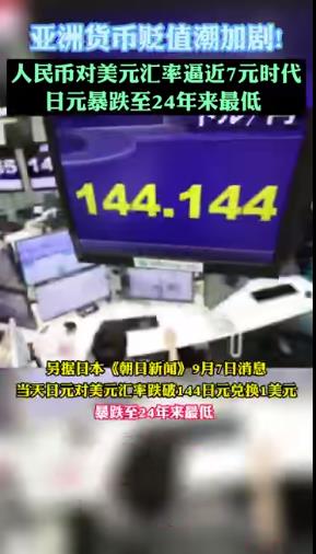視頻:9月7日,1美元兌人民幣6.9160元,較上一交易日下調(diào)64個(gè)基點(diǎn)。人民幣對(duì)美元匯率逼近7元時(shí)代。