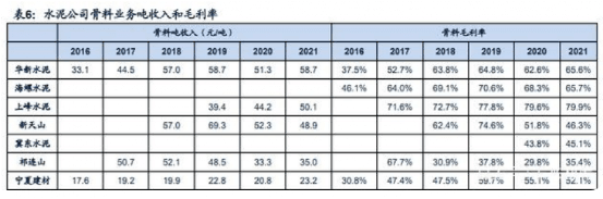 骨料資源屬性帶來高盈利壁壘,區(qū)域間有明顯分化。一方面,2016~2019年由于環(huán)保等因素關停大量小礦山,在淘汰落后產(chǎn)能的同時、新增產(chǎn)能補充不及時,礦山數(shù)量和砂石產(chǎn)量明顯減少,造成骨料供需短期失衡,價格大幅上漲。全國砂石骨料均價從2016年的46元/噸漲至2020年的100元/噸以上。海螺水泥骨料毛利率從2016年的46%升至2021年的68.34%;華新骨料業(yè)務毛利率從2016年的37.5%上漲至2021年的65.6%;上峰水泥2021年砂石骨料毛利率高達79.92%……