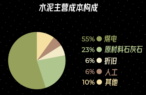 水泥屬于同質(zhì)化產(chǎn)品,龍頭企業(yè)之間比拼的是成本控制能力。水泥的成本主要是煤、電、原材料(石灰石)、折舊和人工。以海螺水泥2021年年報(bào)的數(shù)據(jù)為例,成本構(gòu)成中煤電占比55%,原材料占比23%,折舊占比6%,人工占比6%。