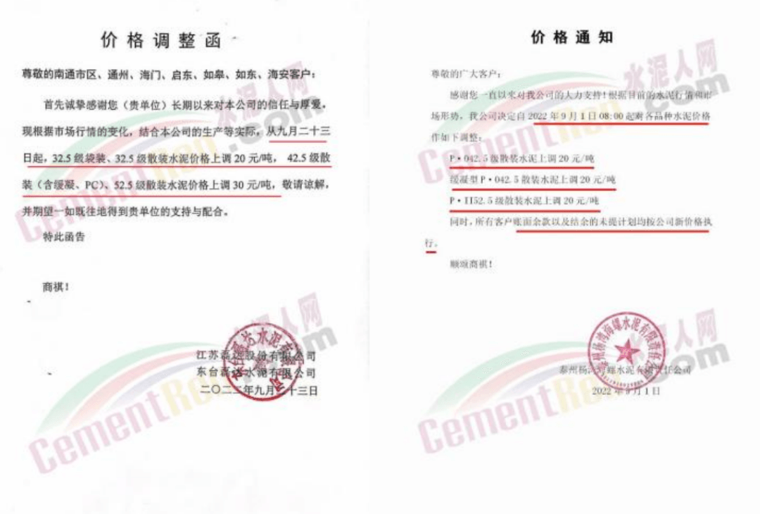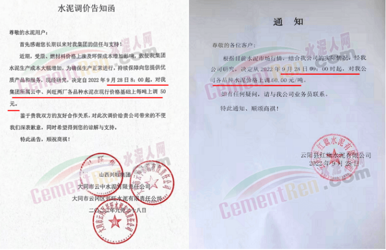 湖北武漢、荊門以及十堰等主要品牌企業(yè)通知,9月25日起上調(diào)水泥價(jià)格30-50元/噸左右,