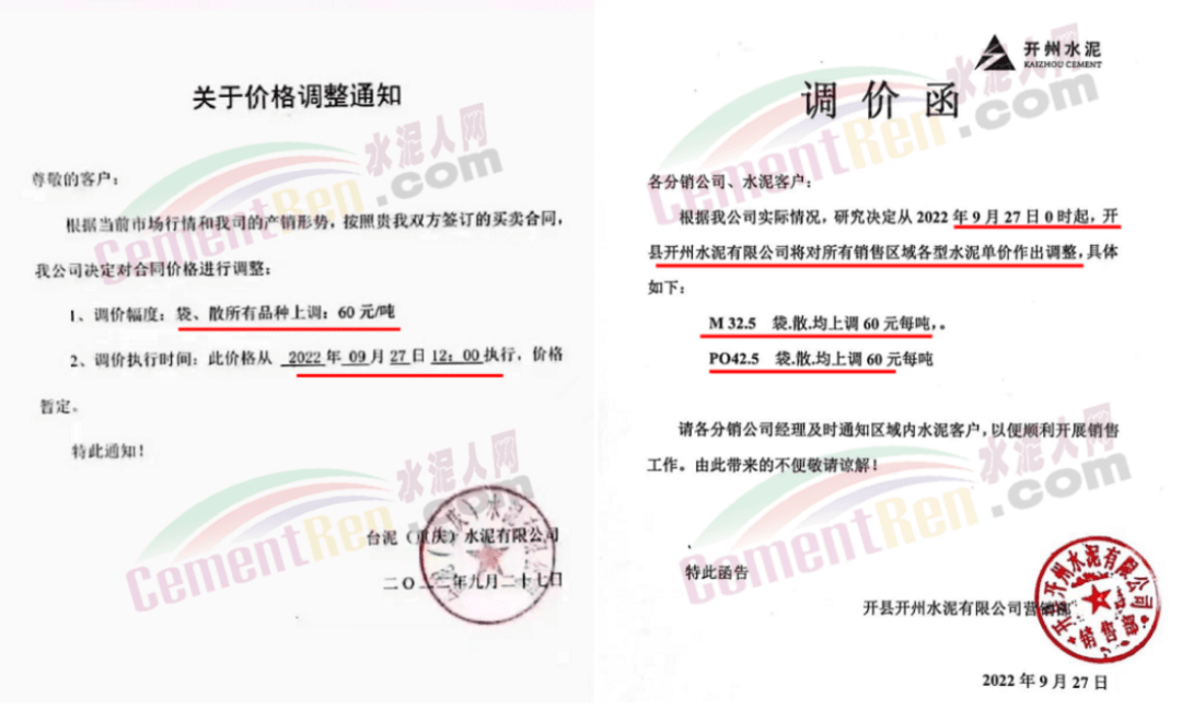 貴州區(qū)域主要品牌企業(yè)通知, 9月7日上調(diào)30元/噸、21日上調(diào)30元/噸、9月30日漲60元/噸,累計(jì)調(diào)漲120元/噸。
