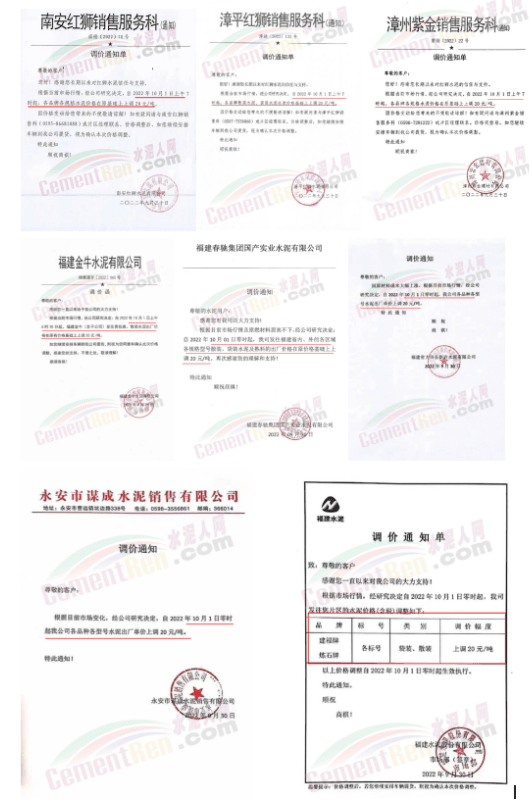 福建水泥銷售經(jīng)理通知,10月1日起所有銷售片區(qū)所有水泥品種上調20元/噸,預計10月10日將再次上調40元/噸。