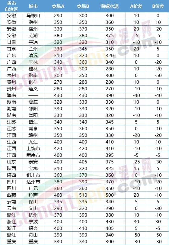 在個別區(qū)域,“水泥價格看海螺”也已成為歷史,經(jīng)銷商多關(guān)注“最低價”。長三角區(qū)域一經(jīng)銷商對水泥人網(wǎng)表示,“同樣的品牌水泥,質(zhì)量都差不多,誰的便宜買誰的。比如海螺和金峰,同時發(fā)布漲價通知,但暗地里卻都在相互較勁兒,今天海螺低10元/噸,明天金峰低5元/噸。各企業(yè)出廠報價已經(jīng)達(dá)到了近幾年的新低,再低就只能虧本了。”