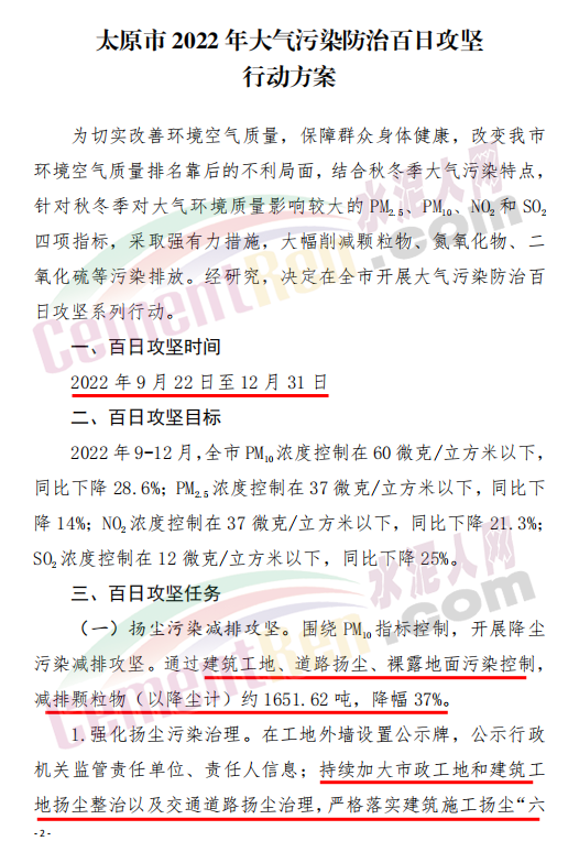前不久,太原市生態(tài)環(huán)境保護(hù)委員會(huì)辦公室印發(fā)《太原市2022年大氣污染防治百日攻堅(jiān)行動(dòng)方案》,針對(duì)秋冬季對(duì)大氣環(huán)境質(zhì)量影響較大的PM2.5、PM10、NO2和SO2四項(xiàng)指標(biāo),采取強(qiáng)有力措施,大幅削減顆粒物、氮氧化物、二氧化硫等污染排放。經(jīng)研究,決定在全市開(kāi)展大氣污染防治百日攻堅(jiān)系列行動(dòng)。百日攻堅(jiān)時(shí)間從今年9月22日至12月31日。