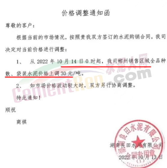 華潤水泥旗下良田水泥通知10月14日0時(shí)起,郴州銷售區(qū)域全品種水泥價(jià)格上調(diào)30元/噸。