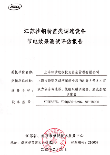 另外,上海錦沙股權(quán)投資基金管理有限公司委托江蘇省、南京市節(jié)能技術(shù)服務(wù)中心對(duì)江蘇沙鋼轉(zhuǎn)差類調(diào)速設(shè)備節(jié)電效果進(jìn)行了測(cè)試評(píng)估,評(píng)估的設(shè)備有:液力偶合調(diào)速器、繞組永磁調(diào)速器、渦流永磁調(diào)速器。