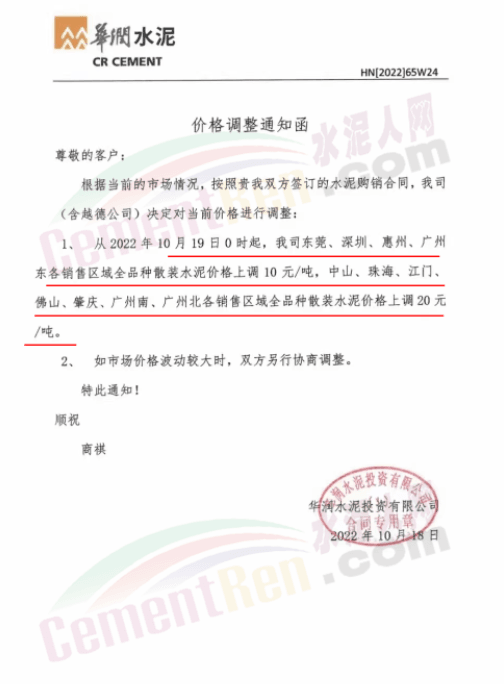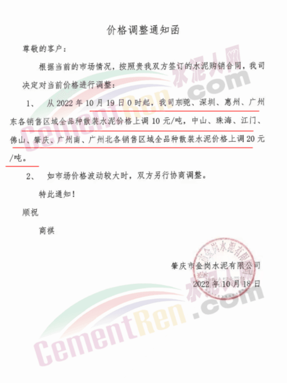 與此同時,珠三角區(qū)域中材天山、中材亨達(dá)、華潤水泥、臺泥水泥、塔 牌水泥、光大水泥、青洲水泥等水泥企業(yè)通知上調(diào)水泥價格10-30元/噸,下游商混企業(yè)紛紛跟進(jìn)。