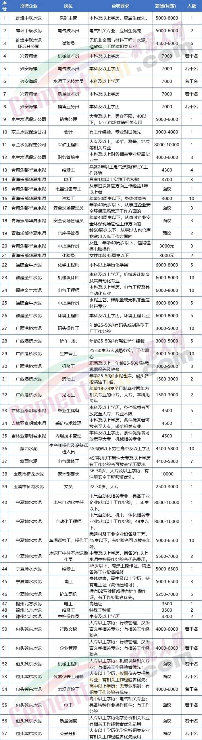 據(jù)水泥人網(wǎng)了解,為了加速企業(yè)發(fā)展,各大集團(tuán)都更加重視了人才戰(zhàn)略,社招崗位也較之前薪水有所提高,似有“搶人”的意思。