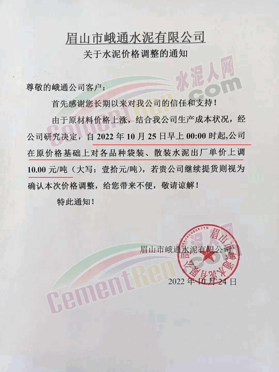 四川眉山多家水泥企業(yè)通知上調(diào)水泥價(jià)格10元/噸,經(jīng)銷(xiāo)商表示,這是“溫柔一刀”。