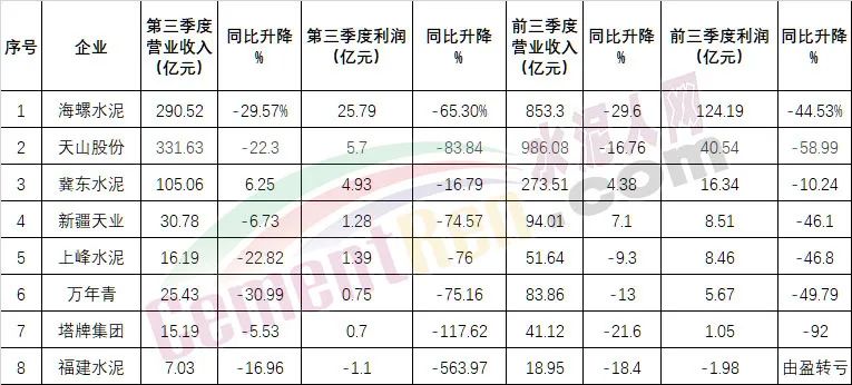 從已披露三季報的企業(yè)可見,包括上峰水泥、冀東水泥、萬年青、塔牌集團、華新水泥、福建水泥等多家企業(yè)第三季度盈利能力均有所下降。