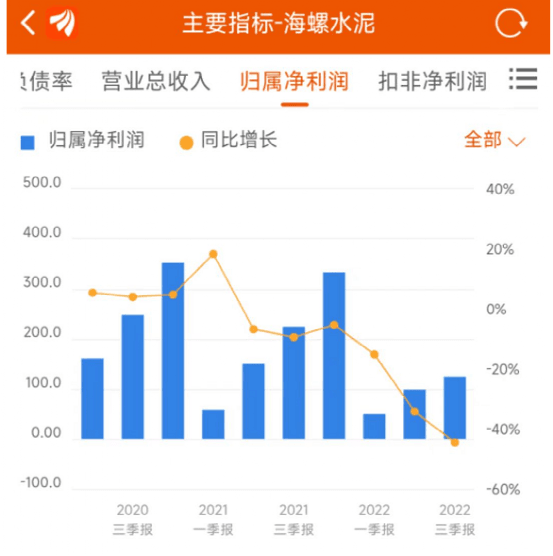 從各報告期來看,自2021年半年報開始,海螺水泥各期內(nèi)的盈利水平同比都呈現(xiàn)負(fù)增長。2022年至今,各期凈利潤同比仍是負(fù)增長,且降幅進(jìn)一步擴大。