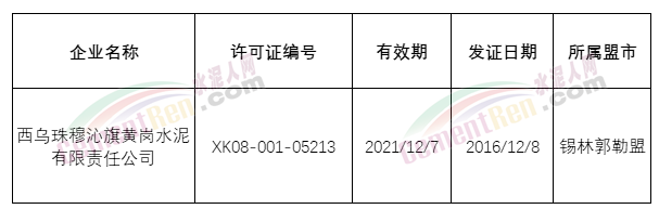 內(nèi)蒙古自治區(qū)1家水泥企業(yè)生產(chǎn)許可證被注銷;