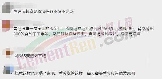 有網(wǎng)友提到承德的一家水泥廠原料磨立磨標稱臺時450t/h,極限480t/h,實際達到500t/h,半年后基材直接報廢,此舉可謂殺雞取卵,涸澤而漁。也有網(wǎng)友表示,“運轉(zhuǎn)率任務(wù)不得不完成”,“沖365天運轉(zhuǎn)率”;還有網(wǎng)友表示,“看噴煤管這樣,每天窯頭看火應(yīng)該能發(fā)現(xiàn)”??梢姡@是企業(yè)相關(guān)人員明知設(shè)備出現(xiàn)問題卻依然堅持帶病運行,以至于噴煤管“帶病延年”。