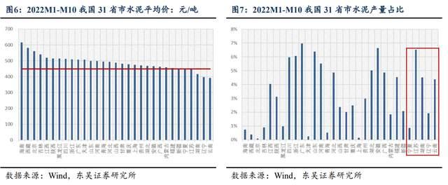 2022年1-10月,河南水泥平均價(jià)達(dá)497.98元/噸,低于河南水泥均價(jià)10%的區(qū)域主要為寧夏、江蘇、湖南、遼寧、云南,其產(chǎn)量占全國(guó)產(chǎn)量比重為18.22%。