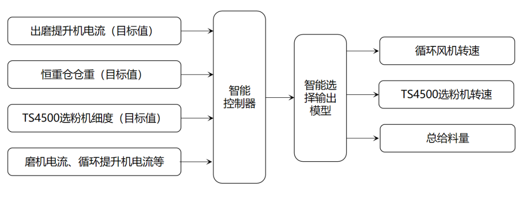 水泥磨智能控制系統(tǒng)基于RASO系統(tǒng)、水泥磨生產(chǎn)工藝以及資深操作專(zhuān)家的經(jīng)驗(yàn),設(shè)計(jì)了整體的智能控制思路,從而實(shí)現(xiàn)多變量之間的協(xié)調(diào)控制和全局優(yōu)化。具體包含以下幾個(gè)方面的控制單元,輥壓機(jī)負(fù)荷優(yōu)化控制單元、水泥磨負(fù)荷優(yōu)化控制單元、水泥質(zhì)量?jī)?yōu)化控制單元等。通過(guò)對(duì)這些控制單元的協(xié)調(diào),智能控制系統(tǒng)實(shí)現(xiàn)對(duì)整體水泥磨系統(tǒng)的穩(wěn)定和優(yōu)化操作。