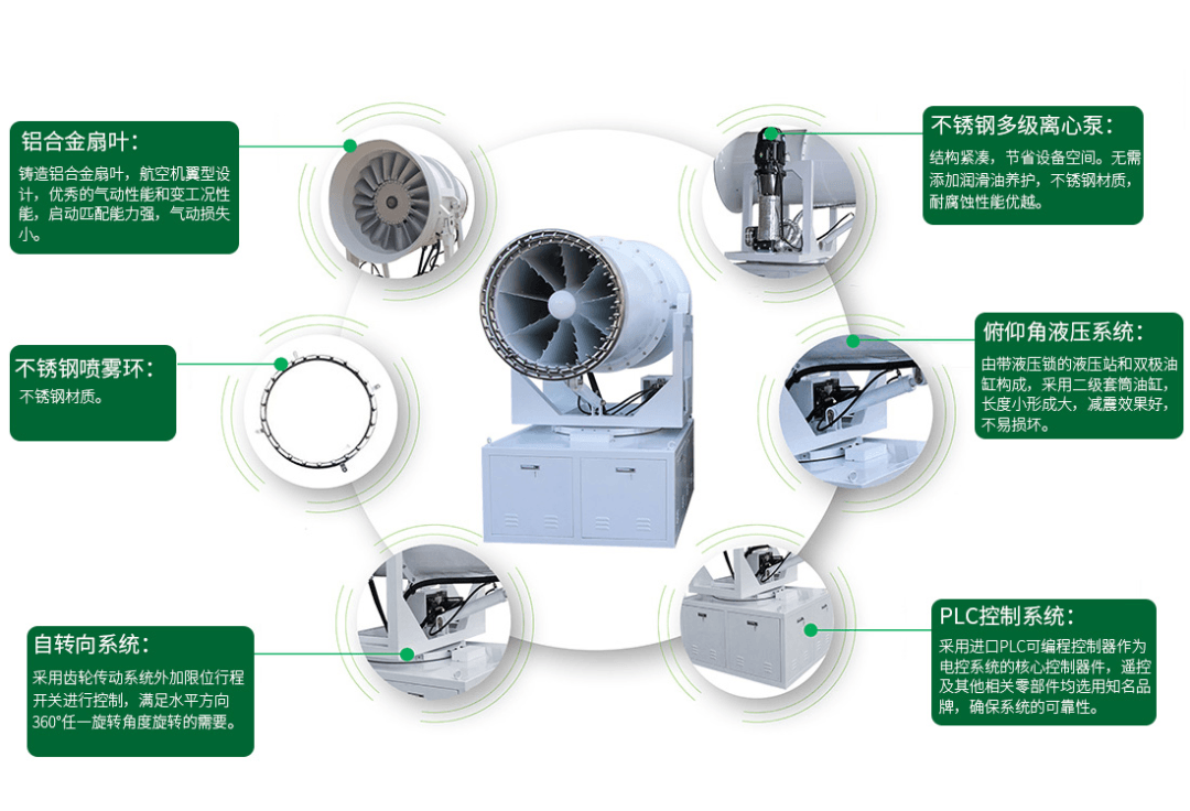 據(jù)水泥人網(wǎng)了解,水泥廠想要完全根治粉塵污染是不太可能的,只有在污染源頭上進(jìn)行處理,做到預(yù)防為主,而科美環(huán)境能為水泥企業(yè)提供節(jié)能、智能的噴霧抑塵解決方案,其降塵霧炮機(jī)設(shè)備具有以下優(yōu)勢: