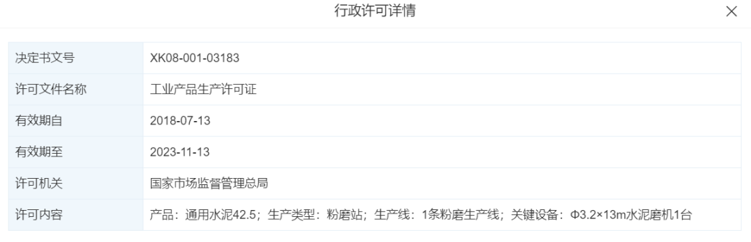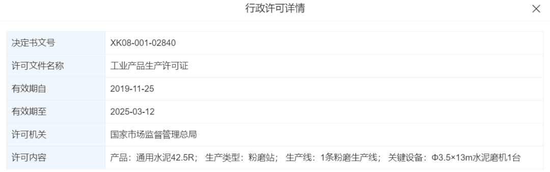 據(jù)查詢,廣西梧州市萬凌水泥有限公司生產(chǎn)許可證編號(hào)XK08-001-02840,有效期至2025年3月12日。企業(yè)類型為粉磨站,擁有一條粉磨生產(chǎn)線,關(guān)鍵設(shè)備為Φ3.5×13m水泥磨機(jī)1臺(tái)。