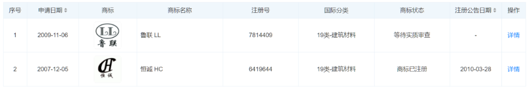 企業(yè)商標(biāo)注冊(cè)信息顯示,旗下共有“萬凌”和“鴛鴦江”兩個(gè)注冊(cè)品牌,并沒有不合格品所列的“粵華水泥”注冊(cè)商標(biāo)。