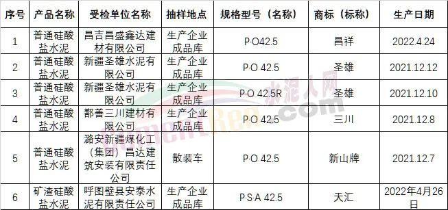 新疆通報(bào)6批次42.5水泥不合格,涉及一家全能水泥廠