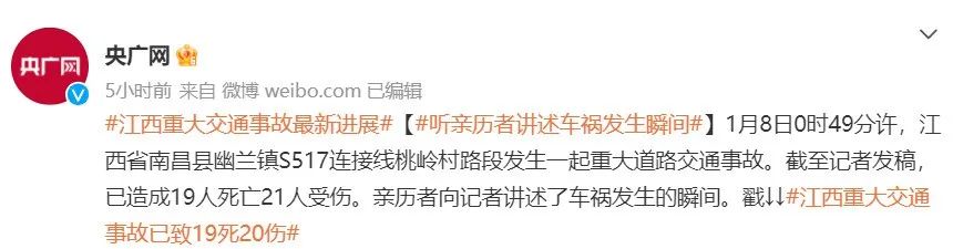 1月8日凌晨,江西南昌縣發(fā)生一起重大交通事故,截止1月9日16時(shí),已造成19人死亡21人受傷。當(dāng)?shù)鼐用裢嘎?,因逝者家屬需早?點(diǎn)前到殯儀館排隊(duì)拿號(hào),故村民于凌晨出殯,后被貨車撞上送行隊(duì)伍造成死傷。
