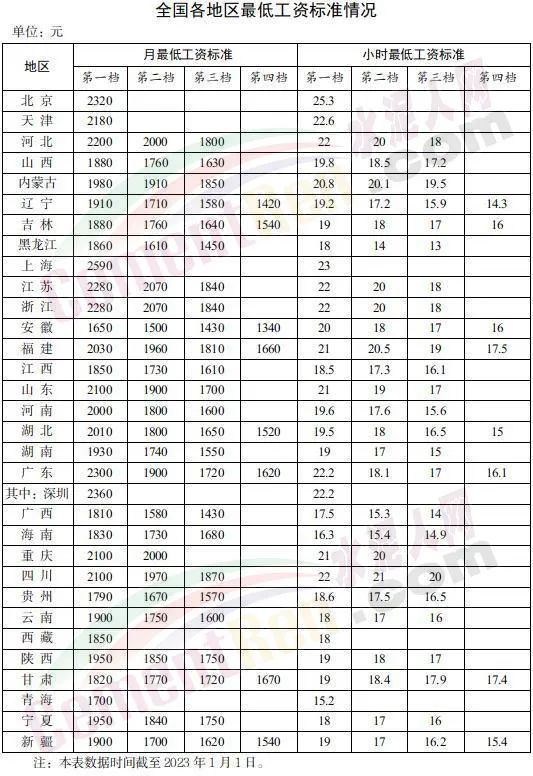 從此前人社部公布的截至2023年1月1日全國各地區(qū)最低工資標(biāo)準(zhǔn)情況也可見,上海2590元/月的工資標(biāo)準(zhǔn)位于各省市自治區(qū)的首位,北京、廣東、江蘇、浙江、河北、天津、山東、四川、重慶、福建、湖北等13個地區(qū)最低工資標(biāo)準(zhǔn)第一檔也都在2000元/月以上。安徽、貴州、廣西、江西、云南、湖南、陜西等19個地區(qū)月最低工資不足2000元。水泥大省安徽更是低至1650元/月,位于33個地區(qū)最低值,其第四檔工資更是低至1340元/月。
