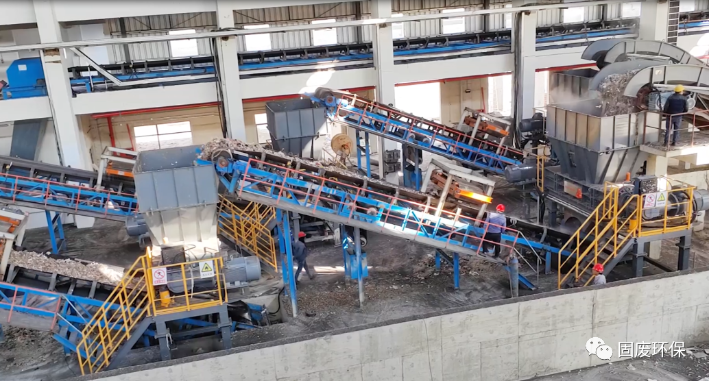 該系統(tǒng)先將待破碎的生活垃圾送至一級破碎進行粗碎,再將破碎后的物料經(jīng)過篩分、磁選、風選等精細化處理工藝,得到可利用的金屬、輕物質(zhì)和重物質(zhì);其中輕物質(zhì)被繼續(xù)輸送至二級破碎進行細碎,最終得到粒狀98%小于30-80mm的可回收利用資源。