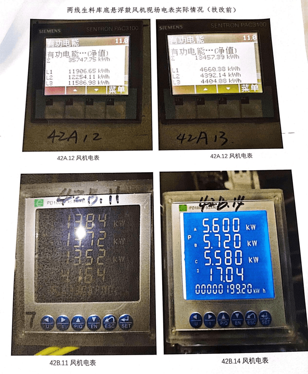 兩線生料庫(kù)底懸浮鼓風(fēng)機(jī)用電量技改后