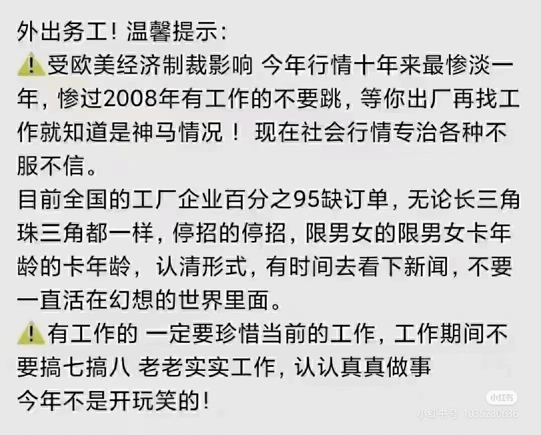 一些大型電子廠,十幾個廠區(qū)本可以招工幾百幾千人,卻根本不招或是只招幾十個崗位,原因自然離不開訂單荒,中小型企業(yè)亦然,甚至還有拿到錄用通知單卻被無情“拋棄”的。