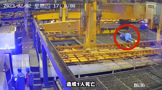 2023年2月2日16點(diǎn)59分,長沙某機(jī)械有限公司發(fā)生一起機(jī)械傷害事故,造成1人死亡。經(jīng)初步了解,本起生產(chǎn)安全事故原因為當(dāng)事人違反安全操作規(guī)程,在激光下料平臺正在進(jìn)行交互運(yùn)轉(zhuǎn)時,上臺對余料進(jìn)行清理,導(dǎo)致正在交換工作的上、下平臺將其撞倒并擠壓致死。
