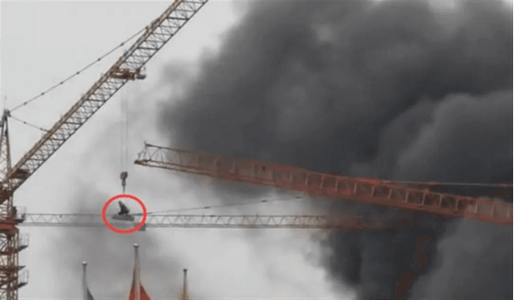 2月22日上午,山東濟(jì)寧一在建工地發(fā)生火災(zāi),一名工人被困塔吊上,隨后被其他工人用另一臺塔吊救出。有目擊者介紹,工人獲救約1分鐘后,那臺塔吊就倒塌了。