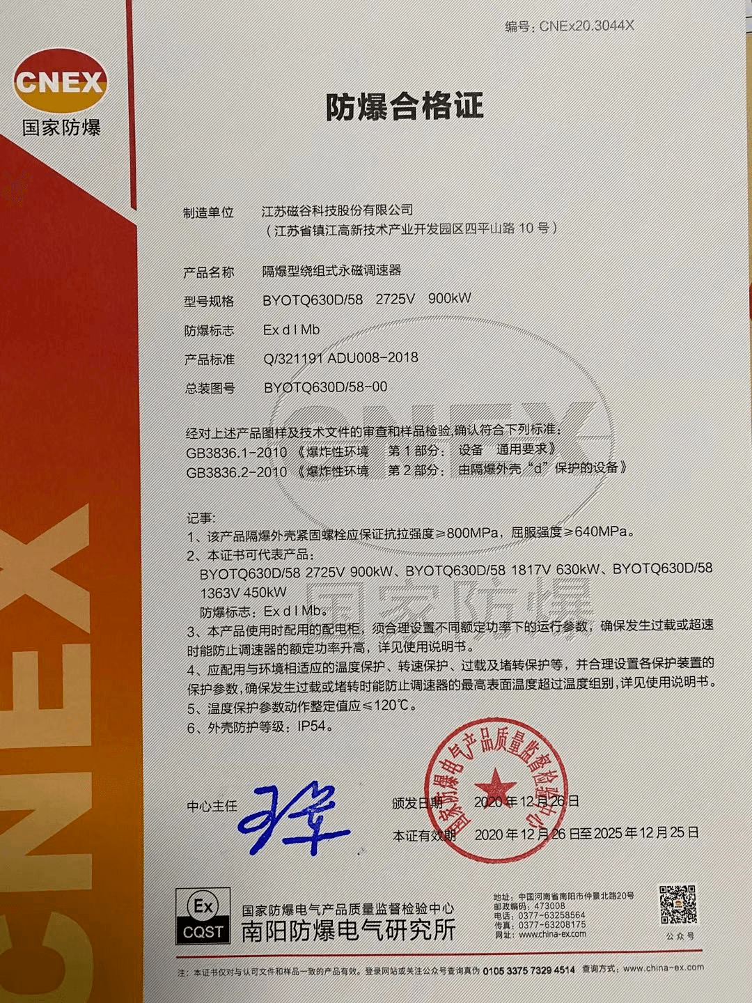 7、獲得國(guó)家防爆電氣產(chǎn)品質(zhì)量監(jiān)督檢驗(yàn)中心頒發(fā)的防爆合格證。
