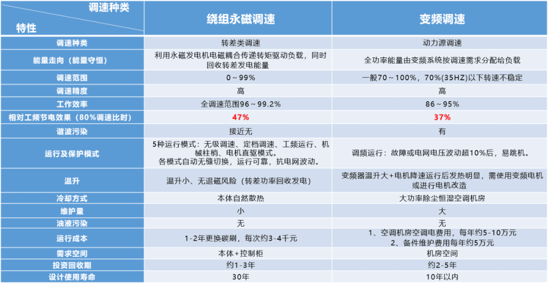 方案3:繞組永磁調(diào)速器取代液力偶合調(diào)速器或渦流永磁調(diào)速器,節(jié)電率高達(dá)15-25%,投資回收周期2-3年。