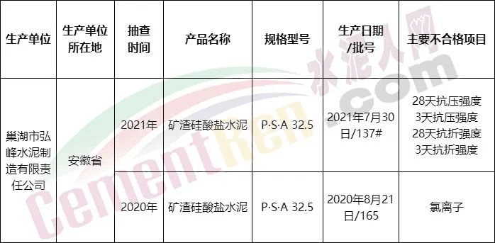 其中,國抽不合格企業(yè)名單共包含21家水泥企業(yè)。主要不合格項目為抗壓、抗折強度以及氯離子和水溶性鉻,且不合格企業(yè)中4家企業(yè)復(fù)檢仍不合格。