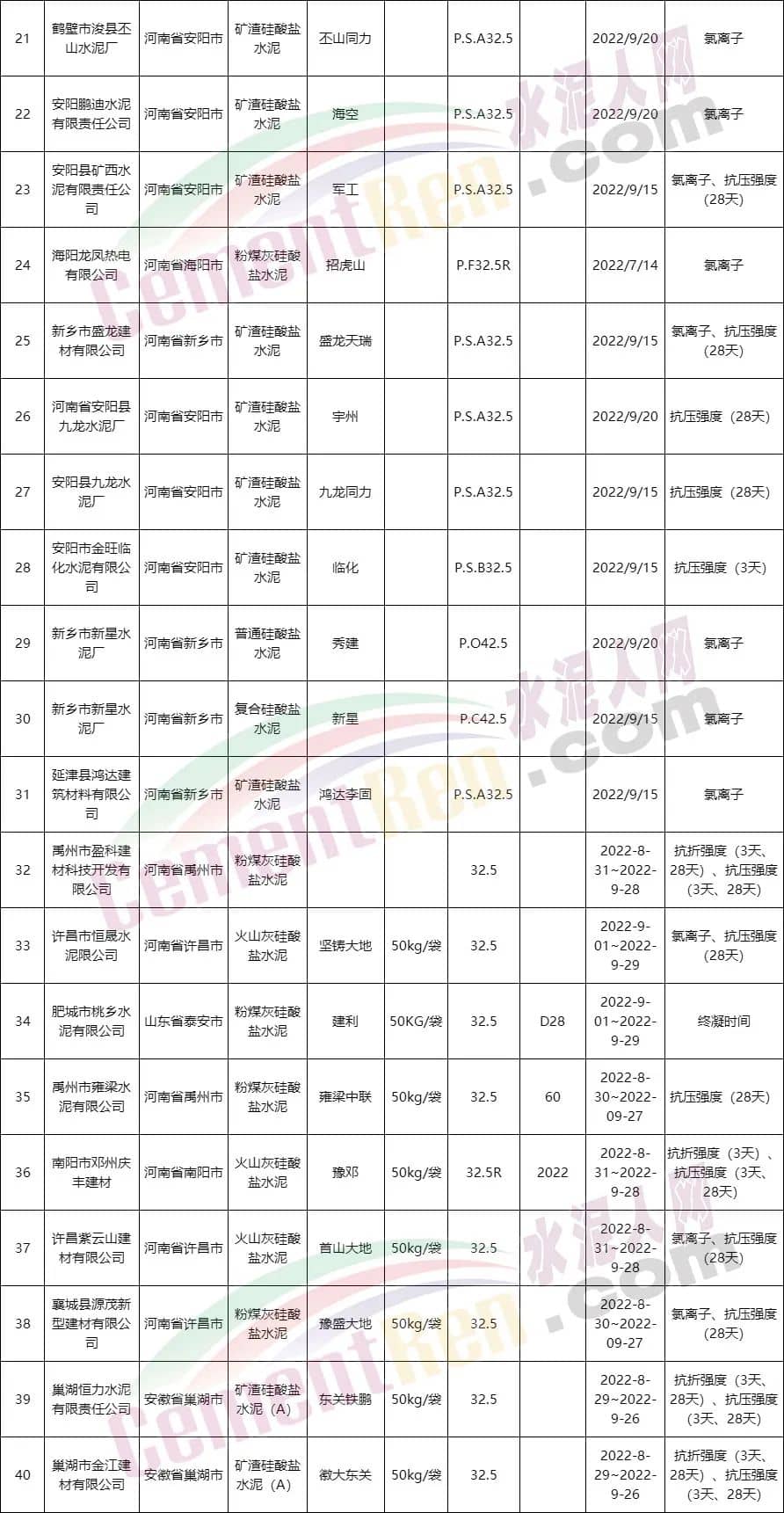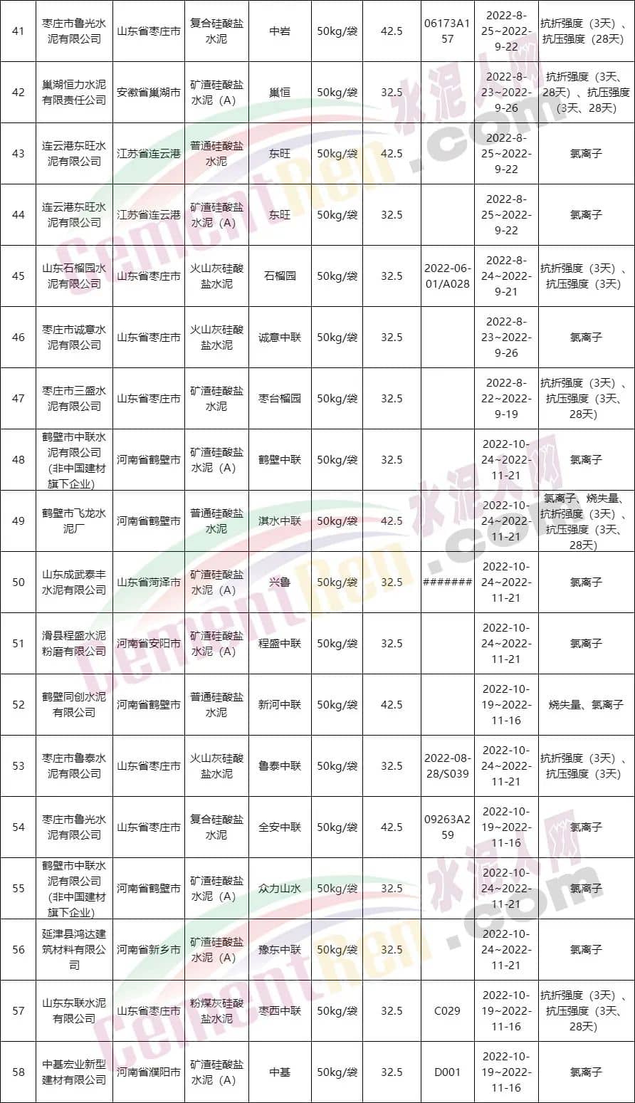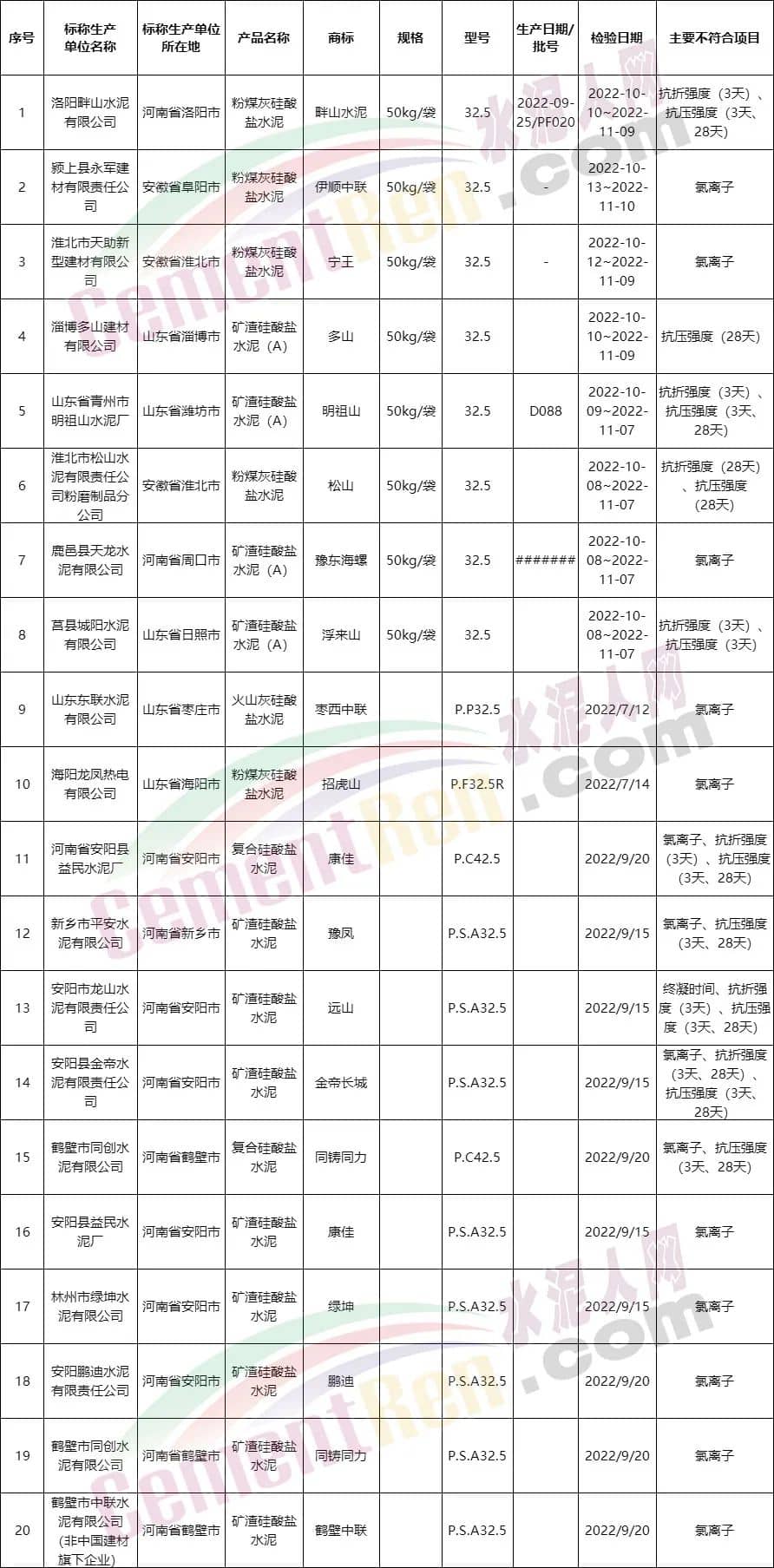 水泥質(zhì)量萬里行組委會通報部分不合格品名單