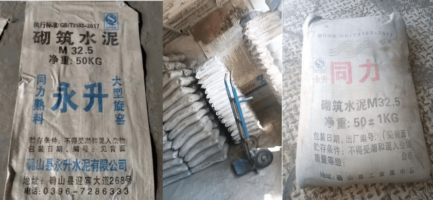 水泥包裝袋上標稱的“確山縣永升水泥有限公司” 未查詢到相關的工商注冊信息。通過模糊查詢找到一家注冊地址位于確山縣朗陵街道迎賓大道中段南側268號的確山縣永升建材有限公司,但未查到相關商標注冊信息,也未查到工業(yè)品生產許可證信息。