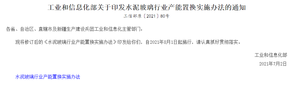 2021年8月1日起新修訂的《水泥玻璃行業(yè)產(chǎn)能置換實(shí)施辦法》 規(guī)定嚴(yán)禁備案和新建擴(kuò)大產(chǎn)能的水泥熟料項(xiàng)目。確有必要新建的,必須制定產(chǎn)能置換方案,實(shí)施產(chǎn)能置換。產(chǎn)能置換要求中不論是位于國家規(guī)定的大氣污染防治重點(diǎn)區(qū)域?qū)嵤┊a(chǎn)能置換的水泥熟料項(xiàng)目,還是跨省置換的項(xiàng)目,均加大了置換比例,但未規(guī)定在能耗方面的置換要求。