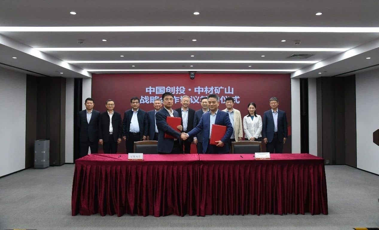 中材礦山總經(jīng)理張漢武與中國(guó)創(chuàng)投行政總裁李杰代表雙方簽署協(xié)議,雙方將本著友好合作、互惠互利、共同發(fā)展的原則,就投融資、礦山業(yè)務(wù)等領(lǐng)域展開深入合作。