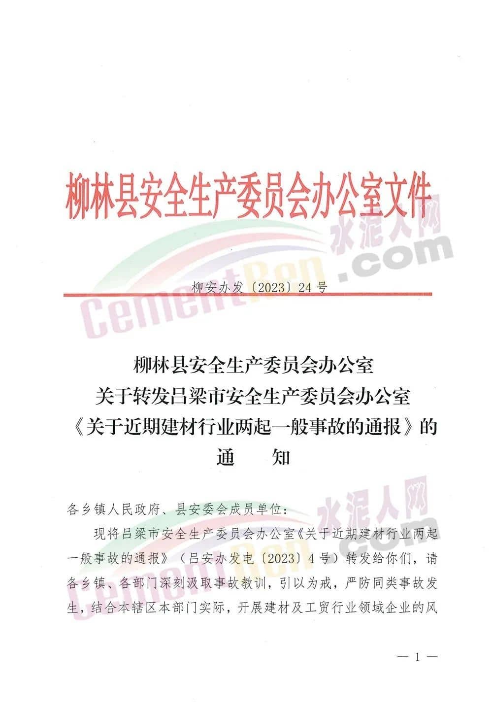 針對上述事故,山西呂梁市柳林縣安全生產(chǎn)委員會辦公室發(fā)布通知給各鄉(xiāng)鎮(zhèn)人民政府、縣安委會成員單位要求各鄉(xiāng)鎮(zhèn)、各部門深刻汲取事故教訓,引以為戒,嚴防同類事故發(fā)生,結(jié)合本轄區(qū)本部門實際,開展建材及工貿(mào)行業(yè)領(lǐng)域企業(yè)的風險隱患排查治理工作,從嚴從細進行“九個自查”,嚴肅查處企業(yè)違法違規(guī)行為,確保安全生產(chǎn)形勢穩(wěn)定。通報原文如下: