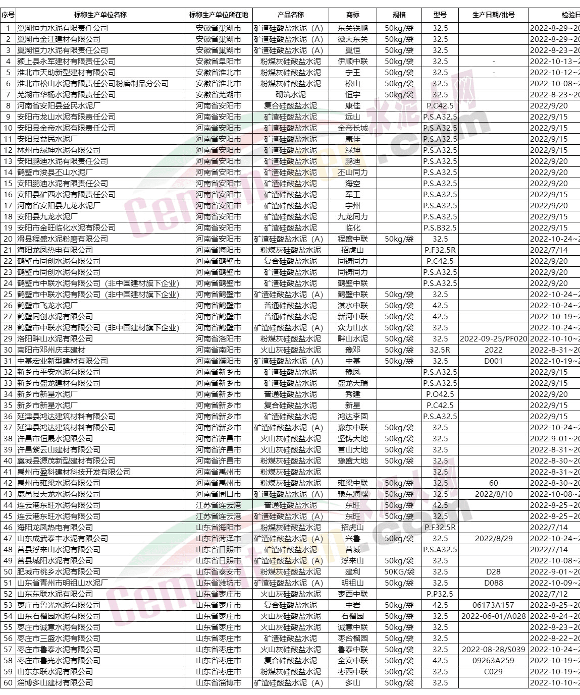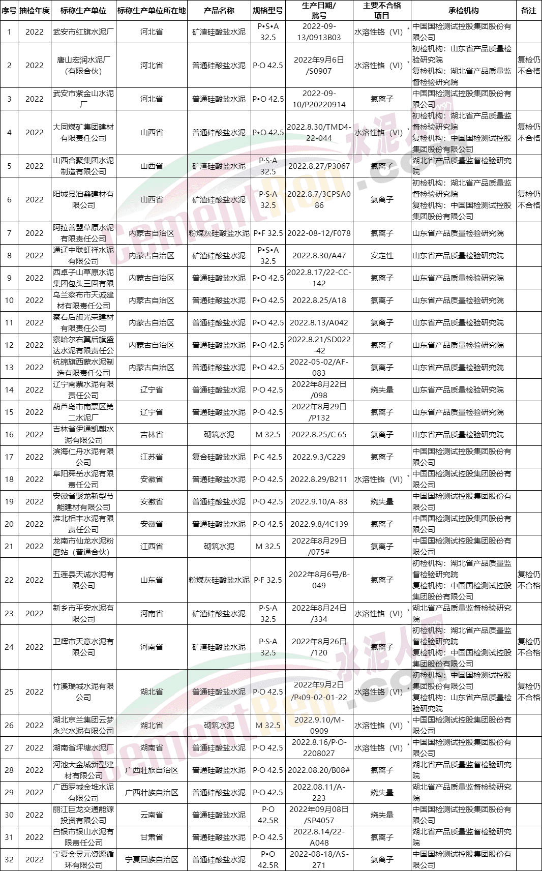 水泥質量萬里行2022年流通領域抽樣60批次不合格,不合格率31%