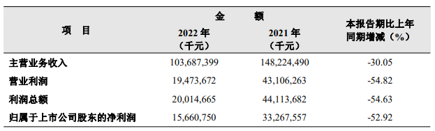 從海螺水泥此前發(fā)布的2022年年報(bào)可見,2022年公司營業(yè)收入1320.22億元,同比下降21.4%;歸母凈利潤156.61億元,同比下降52.92%。盡管營收和利潤雙雙下滑,但是營收下滑幅度相對(duì)較小,而利潤卻直接“腰斬”。