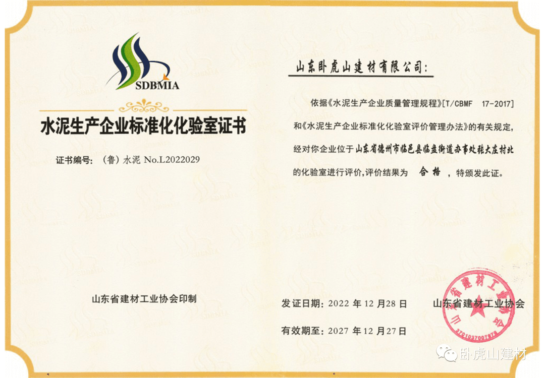 多年來,臥虎山建材出品水泥在省、市化驗室的檢驗結(jié)果都是業(yè)內(nèi)佼佼者,憑借強(qiáng)大的技術(shù)力量、先進(jìn)的生產(chǎn)設(shè)備、可靠的原料質(zhì)量和過硬的產(chǎn)品質(zhì)量,臥虎山建材先后獲得全省水泥生產(chǎn)企業(yè)標(biāo)準(zhǔn)化化驗室證書、全省2022年水泥物理檢驗和化學(xué)分析大對比全合格單位等榮譽(yù)稱號。
