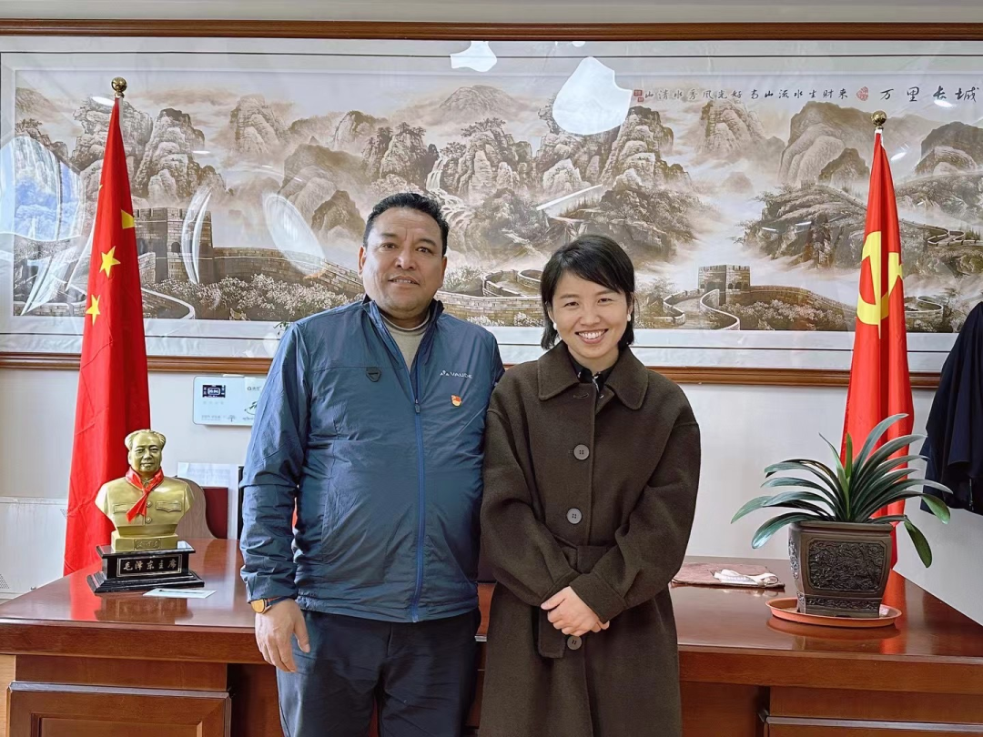 昌都高爭(zhēng)黨委書(shū)記、董事長(zhǎng)拉巴次仁(左)與水泥人網(wǎng)張?zhí)m(右)合影