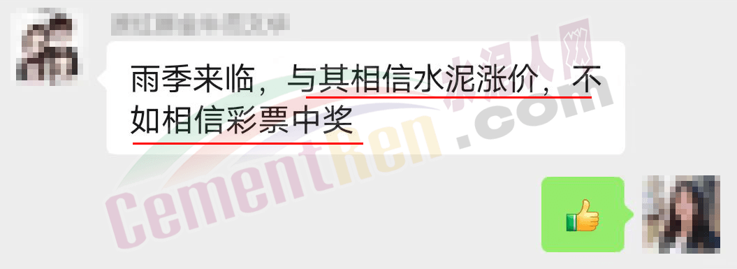 對于水泥企業(yè)復(fù)價上調(diào),一經(jīng)銷商調(diào)侃稱,雨季來臨,與其相信水泥漲價,不如相信彩票中獎。