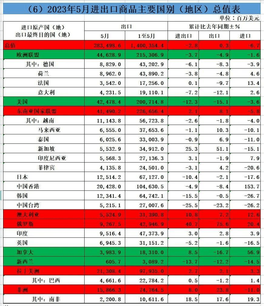 并不樂觀的數(shù)據(jù)背后,是全球經(jīng)濟出現(xiàn)了衰退,導(dǎo)致需求越來越少,歐美等地區(qū)對于我國的訂單更是幾近腰斬。1-5月份的累計情況,對美國出口同比下滑15.1%,對歐洲同比下滑4.9%,對加拿大、新西蘭都是同樣的問題。